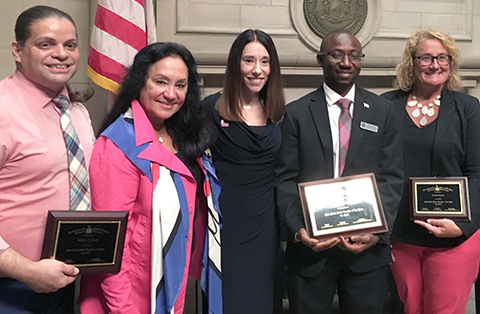 (Photo: Above, Susso, second from the right, is with finalist William Green, a Bronx chemistry teacher; Regents Chancellor Betty Rosa; NYSUT EVP Jolene DiBrango; and finalist Rachel Murat, a Maine-Endwell High School social studies teacher.)